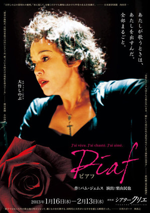 長崎旅行記の前に芸術鑑賞の話題を昨日大阪森ノ宮ピロティホールで 大竹しのぶさん主演の「ピアフ」を観賞してきました貧民窟で育ち 路上で歌っていた歌唱力が認められ やがて世界的大スターになったピアフしかし プレッシャーと孤独などに押しつぶされ 酒と薬におぼれる日々 亡くなったのは50歳前だったが 老女のようだったとか オープニングの ボロボロになった体で マイクの前にたち 唄えず倒れるシーンから 観客の心をわしづかみ若き日の自由奔放な姿 酒と薬でボロボロになっても唄おうとする姿 3時間出ずっぱりのしのぶさん 見事に描き分けていた代表作「愛の賛歌」 そしてエンディングで唄う「水に流して」 に思わず ホロり昨年度の 読売演劇大賞主演女優賞に輝いた作品 以前映画でも見、CDも持っている隠れピアフファンとして 納得のいく作品でした 大竹さんありがとう 他に終生の友人に梅沢昌代さん 往年の大スター マレーネデートリッヒに彩輝なおさん 等立ち見席も出る大盛況 金曜日の昼とあってか 90%以上は女性でありました