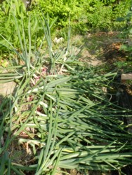 玉ねぎの茎がすべて倒れたので収穫した いつ植えたのか まったく記憶になく ブログにもアップされてない 必死に昨年の手帳をひっくり返して やっと 11月7日50本だけ購入したことが判明倒れた状態で放っておけば もう少し肥大するらしいけど あっさりと掘り起こす畝数が少ないので 次世代へのため できるだけ早くお役御免していただくいただいたメロンの苗 地這えでなく 支柱仕立てとする 未経験だがネットで調べることもせず キュウリとおんなじようなものだろうと 初挑戦実がなったら ネット袋に入れて保護するつもり