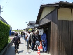 世間でいうゴールデンウイークは首をすっ込めていて 最終日6日から我らがゴールデンウイークスタート車で四国に行ってきました 4人連れで内3人免許保有者 全日快晴の元 3泊4日 1200kmのドライブを楽しんできましたまずは岡山から瀬戸大橋経由で香川県へ 香川と言えば 何と言ってもうどん県挨拶代わりに 名物うどん店を訪問 「ネギがいるなら 裏のハタケでとってきんさい」といっていたとかの伝説の店 なかむらうどん店11時過ぎ店に到着 GWも最後だから空いているだろうと 高をくくって行ったら大間違い ずらっと列が ほとんどが る○ぶなどの雑誌を抱えた若者で その中に 中高年がちらほらふだんなら こんな行列かなわんわ となるところなれど 折角遠路はるばる来たんだからと 並ぶこと40~50分 ようやく暖簾をくぐれました 忙しく うどん玉を茹でる 従業員の中で我々も 厨房に入って 卵を割ったり 茹であがるのを待ったり 楽しんでます そして出来上がったのが これ! 釜玉うどんうどん1玉 210円 卵50円 プラス トッピング100円 合わせて360円 ! 軽く醤油をかけて食す 50分待ったかいがありましたね やはり本場もんは気分的に違います 美味しかったです