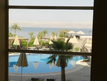 ずっと雨続き 梅雨季とはいえ ちょっと降り過ぎさて死海で ついに医者を呼ぶことにこのツアーで初めて ツアー限りの保険に入ったのが大当たり 今まではカード会社の保険でまかなえると思っていたが やはりツアー会社と契約する方がいざというときの流れはよさそうです 添乗員さんが ホテルの交換を通して 保険会社に連絡 オペレーターははるか仏蘭西はパリにおられます(直線距離にして3400km) 思っていたよりは早く 1時間ほどしてか 初老の先生が来られました胸をポンポン 喉の奥をみて 「もっと水を飲め ジュースを飲め」と言う つまりは脱水症状 熱中症にかかっていたようです 薬をいただいて 診察料5000円弱 まぁこんなもんでしょう翌朝 熱は37℃代に下がっていたけど 目をあけると 高級ホテルの天井がゆっくりと回っていました やばい と思ったけど 幸い すぐに収まりましたホテルから眺める死海 対岸はイスラエル今日は空路ドバイに向かうので ゆっくりと静養している暇もなく出発 80km北上し 首都アンマンの北 ローマ時代の遺跡を残すジェラッシュ今内乱中のシリアの首都 ダマスカスまで僅か150kmだったけど もちろんながら きな臭い雰囲気はまるでなしイタリア ポンペイ遺跡のような遺跡を 炎天下2~3時間かけて回るので こちらもパス最初はバスで待っていたが 運転手さんがみやげ物屋の並ぶ一角の休憩場に案内してくれました のんびり椅子に座って休養 でこちゃんは 飲み物などをもって来てくれたりカイガイシク介抱 一時間ほどしたところで 向かいで面白くもなさそうにジッと座っていたみやげ物店主が一言「ぐっど わいふ」 ありがとうございます戻っていきたぐっどわいふ に その旨を伝えると 「さんきゅー」とお礼を言いつつみやげ物をいくつか買ってました うまく戦略に乗せられたのかなレストラン レモンが実のる屋外で ケバブ料理 今散策をパスした遺跡の周りをぐるりと回って アンマンの空港へ 車窓からこれだけ見れれば十分です アンマンから3時間 夜10時前 「中東の近未来都市」ドバイ着 とても蒸し暑いそして翌明け方 またもや医者を招待!