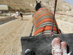 モデルさんをうっとり眺める男ども 我々の目的はエルハズネ(宝物殿)の風景だけ だけど遺跡そのものは超広大 ラクダで巡る旅人も遺跡内で昼食 その後900段!の階段を登って全体の眺望 ということもできたけど当然パス登らなければ 次に行けない なんていわれていたらどうしょうサンドペイント屋等を覗き3時ごろ 往復で予約していた馬車に乗りホテルへ 御者さん 一子相伝か 手綱さばき等 匠の技を息子にを教え込んでましたとは言え おとなしく走ったわけでなく 行きは胃袋がひっくり返ったけど 帰りは本気でむち打ちを心配するはめにホテルに戻り 2時間ほどぐっすり眠り 体温を測ったら39.4℃!!明日を信じて眠ります翌朝37.8℃! まで下がったというべきか しか下がらなかったというべきか死海方面へ150km移動 モ―ゼ終焉の地といわれるネポ山ネポ山から死海を望むこのあと古代のモザイク造りの地図が有名な街の見学があったけど やめましてバスの運転手さんの家 みやげ物屋さんがバス停の近くだったの でそこで休憩させていただく店番をしていた やさしそうな運転手のお母さんと アラブ語と大阪弁でのんびり喋りながら時を過ごしましたそしてこのツアーで一番高級そうな死海スパホテルに到着相変わらず39.4℃ ついに医者に診てもらうことにといっても タウンページで近所の医者を探し・・・というわけにもいきません