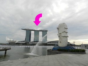今回のシンガポール訪問の目的 観光もそうだけどメインは3年前にオープンした巨大リゾートホテル「マリーナ・ベイ・サンズ」に泊まること かなりミーハーですものすごく目立つ建物だけど 客室内も豪華バスタブも そこんじょそこらのホテルにはついていない立派なものだけどなんといっても 最大の売り は三棟のビルをつなぐ57階 地上200mの 上に作られた 長さ150mの巨大プールホテル宿泊者のみが利用できます夜に入ったけど 水がチメタイ!プールの端まで カメラを片手に濡らさないように静かに移動端には溝があり プールの水が 滝のように地上に落下しないようになってました(当たり前だ)冷たい水に耐えられず 早々に退散 翌晩も挑戦し やっぱり冷たい最終日の朝は三度目の正直 ぬるく気持ちよく水浴びができました気分よく水遊びをするでこちゃん部屋のある20階から1階を見る町もホテルもクリスマスモード昨夜のTV大阪(TV東京)の人気経済ニュースは 人気キャスターが シンガポールに出張し生中継 マーライオンやこのホテルが紹介されてました 懐かしいこれで3回目のシンガポールだけど 淡路島ぐらいの小さな島に行くたびに新しい楽しみがある 日本も見習わなくてはいけませんな