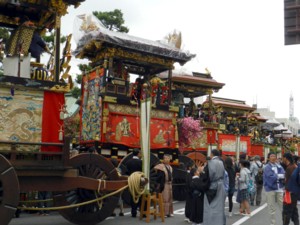 台風19号が着々と近畿地方を狙っているらしい 今のところは風が少しある程度で穏やかなものだけど大阪管内のJR 午後4時ごろから全面ストップする と発表 最近は「たぶん大丈夫」が大丈夫でなくなるケースが多いので これもやむを得ないか 3連休の最後 行楽から 早くおうちに帰りなさいよ と言ってます そんな3連休の中日 滋賀県大津市に400年近く続くという「大津祭」を初めて見学してきました 京都の祇園祭の山鉾をミニチュア化したような鉾 「曳山」が13基 町内を練り歩く コンチキチンのお囃子も祇園祭にそっくり天孫神社前に勢ぞろいした曳山 天孫神社内での 籤改めコンチキチンのお囃子は 主に子供たち 楽しそうに鳴らしてますクラシックな店舗の二階に緋毛氈をかけて見学アーケードの中も練り歩く大津祭の最大の見せ場は 「からくり」 お酒を注いだり しゃんしゃんとお囃子をたたいたり 見事に隊を釣り上げたり 曳山ごとに楽しいからくりを巡幸の所々で見せてくれます これが400年前から続いているとはちょっと驚き動画でも撮ったけど 残念ながらそれを公開するすべを未だ知らず また勉強しておきます祇園祭の京都から電車でわずか10分足らずの大津で繰り広げられる伝統の祭り 話には聞いていたけど見るのは初めて なかなか良かった まだまだ世間知らずの私 また一つ知識が増えました