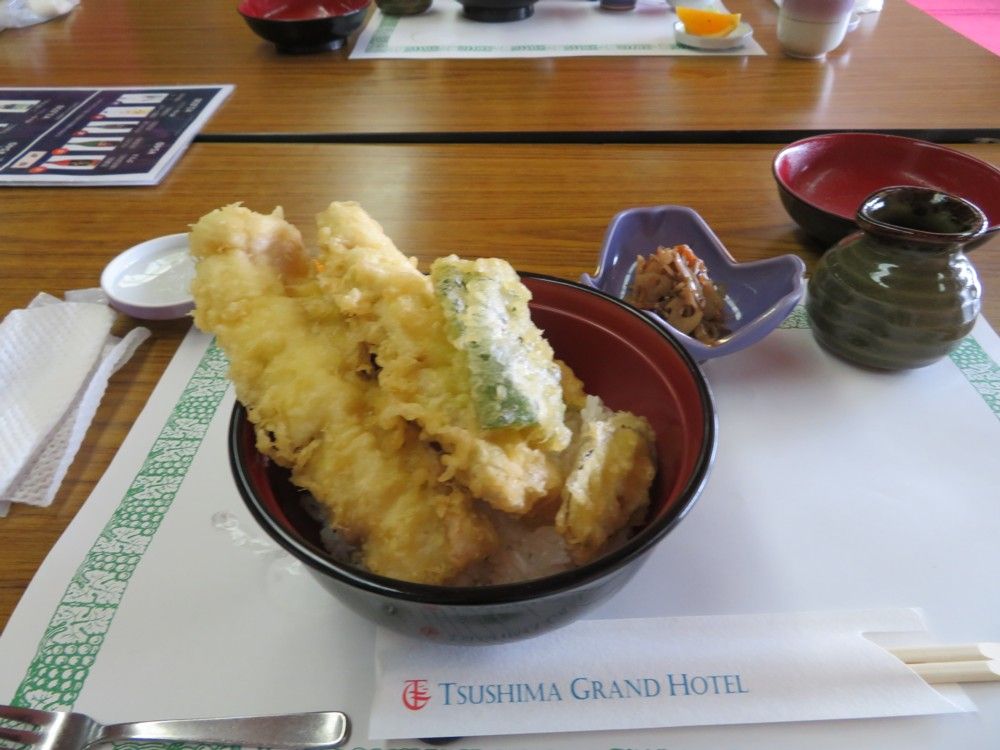 さっそく昼食に豪快な「穴子天丼」がお出迎え