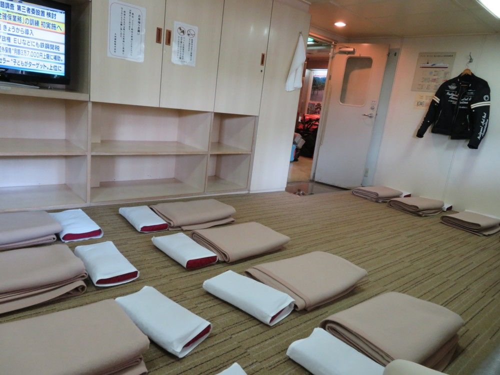 ブラスバンドに送られ大量に乗り込んできたため 2等船室はほぼ満杯 410円も払ってちょっといい部屋に変更しました