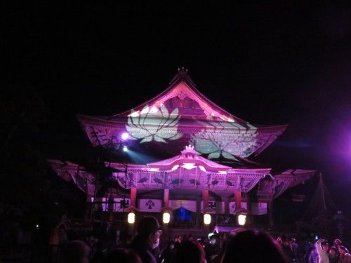 本堂の屋根にも ハスの花びらが浮かんでますさらに本堂内陣で音と光の 迫力ある 幻想的な空間演出が見られました(写真禁止)ほのぼのした気分で 本日のお宿 松代のロイヤルホテルへ 続く