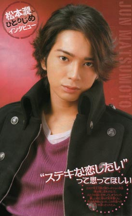 一昨日、TBS系列でハプニング大賞がありました。TBSということは・・・・花より男子2のとこなわけで。ものすごく期待して見ていました。最初のほうに東京フレンドパークに出たときの模様が見れました。う~ん・・・競技に失敗する松潤も・・・・カッコええ・・・・私は彼の笑顔が大好き。微笑んでいる顔じゃないのです。彼はよく微笑んでいる写真があるのですが、それじゃないっ!!!!歯を見せて、本当に『笑ってる』顔が大好き。その顔がたくさん見れました。でも・・・これだけ~~~????なんてがっかりしつつも最後まで見ていると・・・・一番最後にありました!真央ちゃんつくしがインタビューされてるところに本当に『飛び入り』してきたF3。とび蹴り状態で、本当に飛び込んできた松潤道明寺(。-_-。)ポッあきら役の阿部君は審査員で出ていましたから、彼を除く4人+アナウンサーで進行。ハプニング大賞もかっさらって行きました。松潤の笑顔がたくさん見れた私。うれしくて怪しい踊りを踊りまくり(*ΦωΦ)夢の中にまで出てきて、昨日も朝から怪しい踊りを・・・すると昨日、郵便物が。なんと、楽友のメイマームさんから。開けてみると・・・・・コンサート会場やファンクラブに入っていないと買えない写真が!!!!松潤のオンパレード(*/∇\*) キャー 私の大好きなあの笑顔の松潤さまがっ!!!!!ゞ(_△_ )ゞ ヒクッヒクッ 一枚や二枚ではありません。たくさんいただいてしまいました!もう本当に怪しい踊りがパワーアップ(爆)外で遊んでいた娘が帰ってきたとき・・・・あきれた顔をして『なんかうれしいことでもあった?? 松潤関係だね???』・・・・す・・・・鋭い・・・・・もううれしくって、うれしくって・・・・・全部の写真を飾りたいけど、色あせちゃうともったいないし・・・でもしまい込んだりはしたくないし・・・・もうどうしよう、どうしようと、明らかに挙動不審の私。結局・・・・・スキャナで読み込んで、A4の用紙にコピーして貼りだす事に。と~ちゃんと娘は一言。『やめてくれ・・・・・』なんで??いいじゃん♪見るたびに私は幸せな気分になれるし←信じられないくらいジコチュー!こんな幸せな気分になったのは、久しぶりです♪メイマームさん、ありがとう!!このお礼は・・私の強烈なチュゥで・・・(* ̄◎ ̄*) むっちゅぅぅぅぅ
