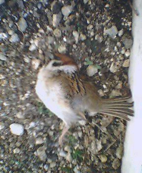 ちょっと古い話なのですが・・・かな~り風が強かった日がありました。洗濯物も、クルンクルン回っちゃって・・・何度かベランダに出ては状態を見て直したりしていたのです。何度目かにベランダに出たとき、ちょっと違和感。プランターの中にちっちゃい獣がいる???白っぽい動物の毛が見えたのです。( ・◇・)?(・◇・ )私が見たものは一体なに???改めてプランターの中を覗いてみました。すると・・・・Σ( ̄□ ̄ノ)ノすずめさんじゃない・・・・・強風にあおられて、きっとうちの壁に激突したんでしょうね。まだヒクヒク動いていました。どうしよう、どうしよう??そう考えつつも乱れた洗濯物を直し、もう一度見ると・・・もう動かなくなっていました。かわいそうに・・・・このすずめさん、このプランターに埋めてあげました。本当は公園にでも連れて行って埋めようかとも思ったのですが・・・たまたますずめさんが落ちたこのプランター、この先一年間は使う予定のないプランターですし。これもなにかの縁かなぁ・・・と思って。掘り返すことのないよう、深く深く・・・空を飛ぶプロである鳥さんにも、こんなことがあるんですね。なんかすごく悲しかったです。