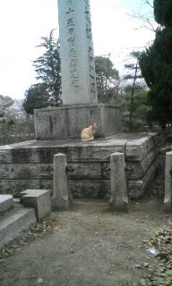 昨日の夕方にUPしようと思っていたのですが・・・予想外に忙しくなり、UPできませんでした。火曜日のお花見。帰り道でもう1人ご挨拶した動物さんのお話です。岡山城の横を通り、お堀で白鳥と鴨にご挨拶しつつ橋を渡ったあと。本来ならば右に曲がるのですけどね。なぜか足が左に。ありえない話なのですが、何かに誘われるように左に向かって歩きました。すると石碑のあたりで何か動いてる。・・・・・なんだ?あれ????え?ひょっとして・・・・???にゃぁだ!!!野良猫が日向ぼっこしていました。すごく気持ちよさそうに、の~~んびりと。でも野良猫。きっと近くまで行くと逃げちゃうだろうし・・・でもかわいいなぁ・・・・触らせてくれないかなぁ・・・・じわじわ近づく私たち。すると・・・・こんなに近くまで寄れた!!!!これ、ズームは使ってないんですよ。ここまで近くに寄れたってことは・・・・・はいそうです。私たち母娘は、このネコちゃんと遊びました。ネコちゃんもゴロゴロ言わせて、喜んじゃって(笑)しまいには娘に寄りかかって寝ようとする始末。『ねぇ・・・・ アタシこのまま動いちゃったら・・・ この子、落ちるよ・・・ね?』ええ、確実に(爆)一生懸命ネコちゃんを説得する娘。『お願い、私はもう帰らないといけないんだよ。 だからもうちょっと真ん中で寝ないと・・・・ ここで落ちると痛いよ・・・ね?』知らん顔でくつろぐネコちゃん。最後にはぐい~~~~~ってお尻を押して、移動させました(笑)私たちはきっとこの猫ちゃんに呼ばれちゃったんですね。ここで出会う運命だったのでしょうか?←大げさな(笑)名残惜しかったのですけど、そこからUターンして、帰路につきました。首輪もしていなかったし毛も少し汚れてたので、きっと野良猫ちゃんだったのでしょう。本当に人懐っこくって、かわいいネコちゃんでした。家に帰ると千太郎がクンクン匂いをかぎまわり、娘に向かって『にゃぁ~っ!!』浮気したなぁ~~~~!!って言ってたのかな(笑)