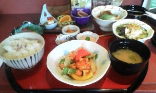 本格的な『ご飯』と呼ばれる『お食事』というものが口にできなくなって数日。体力的にかなりの不安が出てきました。そしてその不安は、近日中にはきっと貧血を起こして倒れるのではないかという不安に変わりました。で。その対策としては『食事を取る』だけなんですよね^^;でも何とか口にしても数分後にそのままリバースの毎日。1人で食事するのがいけないのか?と思いつき、先日楽友でありお友達であるちびろちゃんをランチに誘ってみました。月末の今日。忙しくしてるのは分かっていたのですが、藁をもすがる気持ちでメール。すると快く『福ちゃんにも会いたいから♪』と言ってOKしてくれました。持つべきものは、友達だ(ノ△・。)←うれし泣き食べ物をほとんどとっていない私。頭も全く回りません。で、ず~ず~しくもお店も決めてもらうことに。今回行ったのは、バイパス2号線からちょっと入ったあたりの『菜の花』というお店。お昼はランチメニューだけで1000円也。案内されたのはカウンター席。目の前で板さんたちが料理をしているのを眺めることができます。最近『バンビ~ノ』見てるせいか、板さんたちの動きについつい松潤を重ねてしまう私(。-_-。)ポッいや、松潤張りのいい男ではなかったのですが^^;それでも一生懸命仕事をしている男性と言うのは・・・魅力があります。出てきたランチがこれ。食後にコーヒーが付きました。『食べれるかな?』と不安でしたが・・・気の合うお友達と一緒にいたからか、普通に食べることができました。イカが乗っかってる煮物と味噌汁以外は完食。普段の私なら、これ全部平らげてもまだまだ余裕があるんですが・・・今はそうもいきません。『お金を払うんだから、残したらもったいない!』その思いだけで必死で食べましたとも(笑)何とか食べ終わり、食後のコーヒーをいただきました。その後は図書館へ。家にいるとろくなことを考えないので、本でも読んじゃおう作戦(*ΦωΦ)焼きたかったけど、レシピがなくて無理だったケーキがあったのですが・・・ラッキーなことにそのレシピが載っているケーキの本発見。それを含めて7冊借りました。本を見ていると、なぜだか甘いものが欲しくなってきた私。『お茶・・・しに行く?』恐る恐る聞いてみると『いいよ♪』とのお返事。ちょっと距離はあったのですが、ちびろちゃんが行ったことがないと言う『アンリュール』というお店に。こちらはパンを中心としたお店なのです。モーニングもランチもパンは食べ放題。そこのケーキは、ちょっとお高いけれどボリュームもすごいのです。そこでケーキと紅茶を。これは画像を撮るのを忘れました^^;ケーキも大きかったけど・・・・紅茶カップの大きかったこと!!!『スープカップじゃないの?』って思わず声をそろえてつぶやいた私たち。そのくらい大きいのです。でもケーキが大きいので、このカップはうれしい大きさでした。一食ですごいカロリーを摂取してしまいました(笑)明日体重計に乗るのが・・・ちょっと怖いです。急にこんなに食べちゃったので、少し心配でしたが・・・・ちょっとムカムカする程度で、リバースはなし。ちょっと安心しました。これをきっかけに、普通にご飯が食べれるようになるといいな♪・・・・ちなみに・・・・晩御飯は食べれませんでしたけど・・・でもきっと明日には。お昼ごはんだけでも食べれるようになっていると思います。・・・根拠はないけれど(爆)