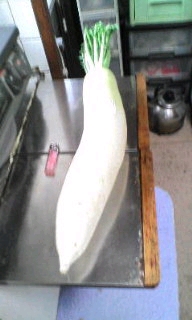 お友達と岡山県北まで行ってきました。道の駅でキャベツと大根を購入。最初は90円の普通サイズの大根を手に取っていましたが・・・・横を見ると100円で大きいのがあるじゃないですか。『こっちにしよう♪』普通サイズを元の場所に戻し、大きいものを手に・・・重っ?!取れないっ!!!!持ち上がらないっ!!!予想以上の重さでした。で、実物の画像比較のため、またもやカートンで買うと付いてくるライターを置いてみました。でかいでしょ?かといってすが入っているわけでもなく、みずみずしくって甘い大根でした。こちらは今夜大根サラダでいただきます。←つまみ食いしてみたそれだけでは終わらないくらい大きいので、大根おろしにしたり炊いたりといろんな使い方ができそうです。