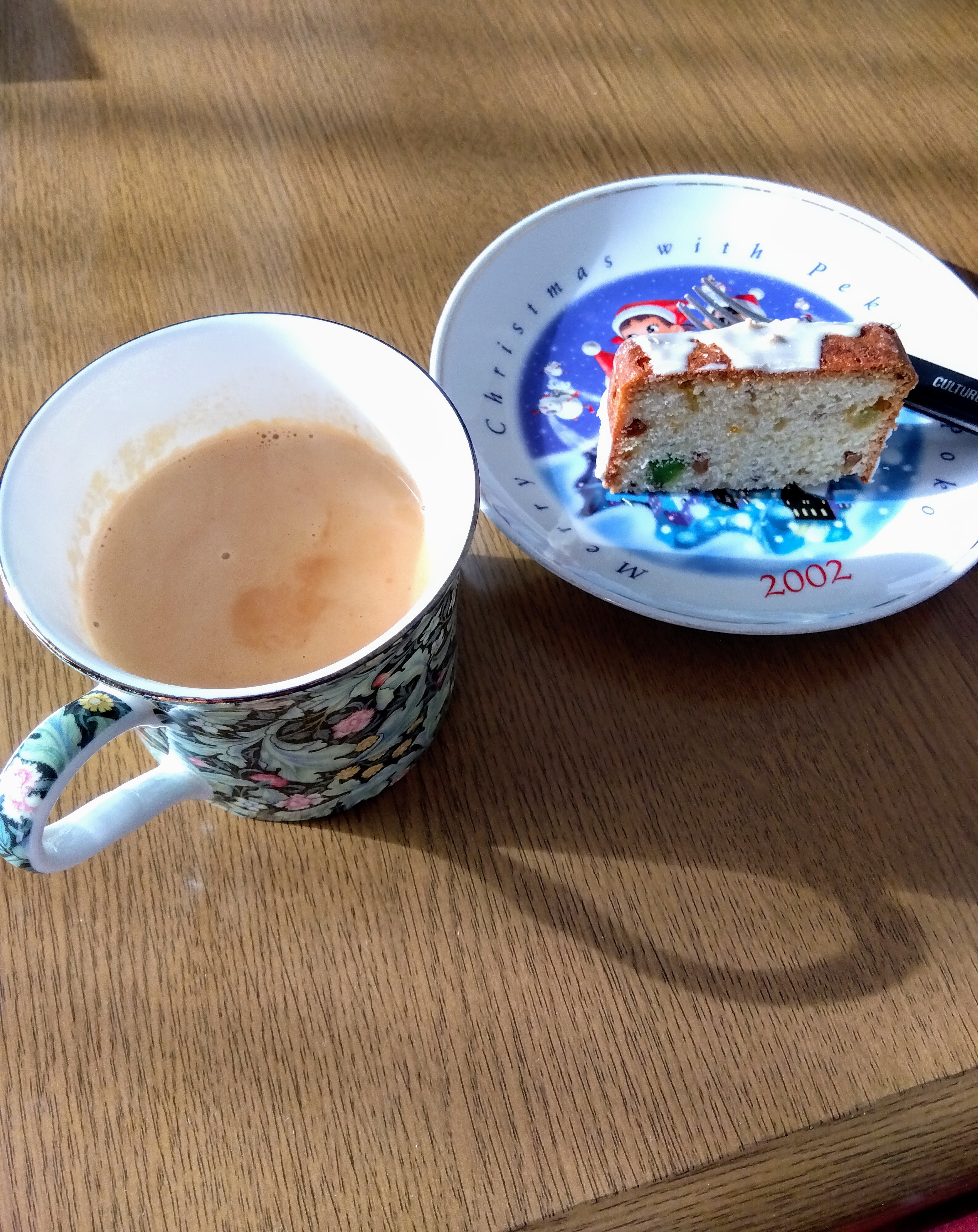 また、寒波が来るみたいでこちらは雪が舞ってますあまり雪は降らないといいのですが…昨日は妹と2024年お疲れ様お茶会をしました良い事があまりなかった2024🥲紅茶を飲んで流しました😄例年ならクリスマスお茶会をするのですが日程等が合わなかったので2人で打ち上げです🤭写真2枚目サンドイッチとシュト―レンは私が用意😉紅茶の先生から分けて頂いたクリスマスティ―を頂きました秋に行った石巻の紅茶専門店のものですリンゴがブレンドされていたので爽やかで飲みやい私好みのクリスマスティ―でした🙆⬇️こちらは本日のお茶チャイです