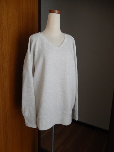 たまにはVネックの服を着たいなぁとパターン Wildberry生地 綿100% 接結ニット(メルカリ)カジュアルで、スッキリ重ね着OKなV開き加減が好きこちらも、久しぶりに着てみて、うふふな気分