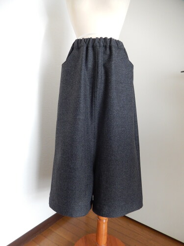 スカートっぽいパンツ今まで作った中で、いちばん好きなパンツ冬生地でも作ってみる の中から 「つばめパンツ」生地 イタリーReggianiヴァージンウールツイル起毛2wayストレッチ杢チャコール やや厚地、張りもありリネンで作った時とは雰囲気が違うけれど、暖かいし短すぎる股下の感じが、やっぱり好き