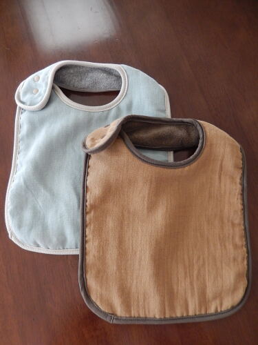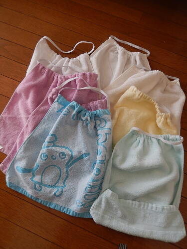 これは簡単考えた人に拍手~4月から保育園に通う孫。保育園も決まり、「保育園用のお食事エプロン作って欲しい」との連絡持ち物リストを見ると、ハンドタオルの上端を縫いゴムを通すだけの簡単なもの「ミシンないから作れない」というママ友多数とかどうするの?と聞いたら、売ってるといろいろ調べてみたら、縫わなくても作れる!!端の縫い目の両端の開いているところにゴムを通せば完成。入れにくかったけれど。しかし、結び目を中に隠すのに大苦戦何とか数枚できたものの、縫ったほうが早いと気が付く右下が、解いて縫ったもの縫い目をほどき、パイル地でない部分を表側に三つ折り肌当たりが良いかと。家でも使えるように、ポケット付きも作ってみた「裏側に8cm折り上げ縫い、ひっくり返す」を縫わずにスナップボタンで横の部分は縫わないほうがゴミとかたまらないらしいスナップボタンなら広げて洗える使わない捨てられないハンドタオルが役に立ち目からうろこの簡単お食事エプロンに万歳先日我が家に来た時に持参したお食事エプロンなんと可愛く、機能的バウンサーで有名なブランドだよと。バウンサーって??時代の進化に驚き、桃の木、山椒の木良いものが売っているし、家にあるもので工夫するアイデアもたくさんいい時代だね。たくさん産んでね
