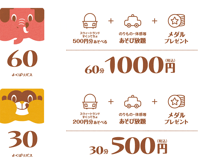 よくばりパスとは、 制限時間内は定額で遊び放題