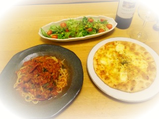 今日は日曜日☆ 毎週日曜は寝坊してしまうのですが、毎回子供たちは早起き。 昨日の夜シンケンジャーの録画をセットし忘れてしまって、 朝子供にめっちゃ責められました もしかして今日最終回・・・じゃないことを祈る 今日は午前中やっと神社に新年のお参りに出かけました。 正月はなんだかんだバタバタしてたので。。。 近所の神社だけど結構人がいたなぁ。 その後昼ごはん食べがてら買い物へ。 来週下の子のピアノがくるので、その下に敷くマットを買いに。 昼は回転寿司へ~久々☆ なんだかインフルが流行ってると躊躇してしまってたんだけど 行きたくなってしまった。。。 てなわけで昼は和食?だったので夕飯はイタリアンで トマトスパゲティー&pizza&サラダをワインとともに トマトスパは、具はウインナー・ツナ・玉葱・人参・ホウレン草 大人用には唐辛子でピリ辛に。ニンニクきかせて隠し味にはアンチョビペースト☆ これ、生協で購入したんだけど、なかなか使えるよん また明日から一週間始るなぁ~ 気合い入れてガンバろ~う