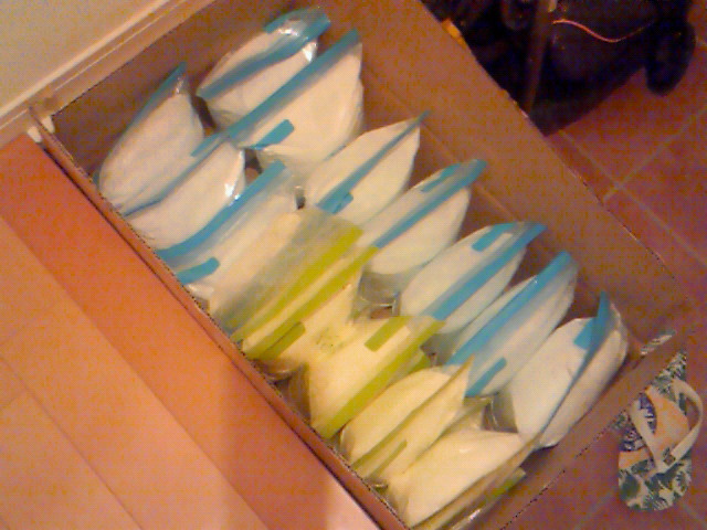 段ボールで送られてきました。中を開けてみると大きな紙袋?に25キロどーーんと入ってました。粉で家が汚れたらいやなのでせっせと玄関でそのままジップロック(うちはイケアの袋)に小分けしました。写真は小分けした後ですうーーん、袋に小分けするとさすがに多さを感じます。これでどんどんパンがやけるぞ~!!今レーズンパン焼いてます。