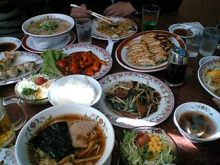 10時にがっちり食べたばかりの幹夫と直樹が、『お母さん、何かない?』と早くも昼食をリクエスト♪♪ 外食してきました。。餃子6人前、固焼きそば、普通の焼きそば、チャーシューメン、ラーメン、エビチリ、レバニラ炒め、ライス2、ビール、ジュース…テーブルが満員御礼大渋滞。 となりのテーブルの、おチビちゃん連れのテーブルが可愛く見えました。 またもう少ししたら『腹が減った~~~』となる。 お金が胃袋に消えていくのだ~~~~~~