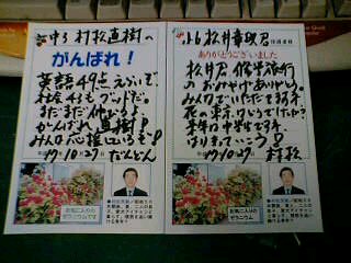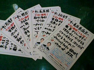 さて今日は生徒募集のハガキを作って発送しよう。それから 1.兄弟姉妹の『お誘いハガキ』 2.テスト優秀者(45点以上/50点満点)の『表彰ハガキ』 3.????? 考えよう~~~↓は幹夫に出した『激励ハガキ』フタバの表のHPの入口に飛んでくださいね。