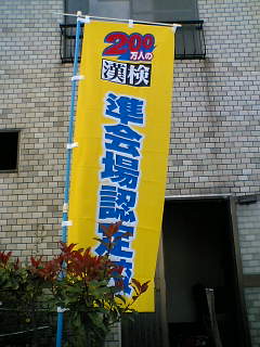 半年くらい前に、だめ元で『漢検協会の旗をつくってくれませんか?』とお願いしたら、1ヶ月くらい前に『作る事になりました。』と電話連絡をいただいた。 漢字検定協会さま、ありがとう。