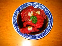 これは奥方が御殿場のいつもの肉屋で調達してきた馬刺し。 泣けるほど、美味いのだ。 最高に美味い!! 2日連ちゃんで泣けた~~ もう、ない。