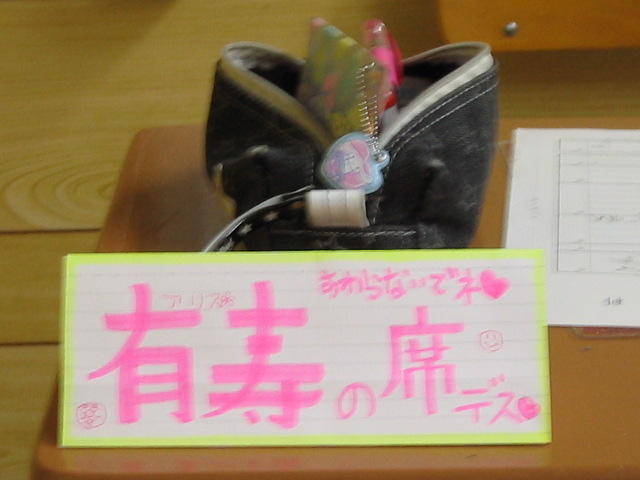10人も入れば一杯の小部屋が3Fにある。 2階の3教室の真上にある隠し部屋。。。『机、占拠していいよ。ただし本気でやる人だけね。。。』 今こんな感じの机が5席ほどある。 ゴミ箱まで持ってきている子もいる。 みんな女の子。可愛いね~~~☆