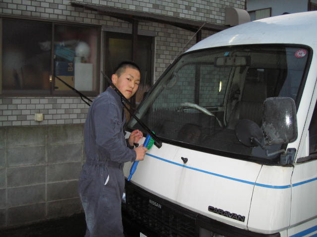 バイト二日目になり、だんだんコツをつかんだかな? 時給700円で黙々と洗車にいそしんでくれた。マイクロバス4台の洗車に4時間ほどかかる。お金の価値も身をもって感じていると思う。 息子が洗車した車で、気持ちよく送迎完了したのだ。