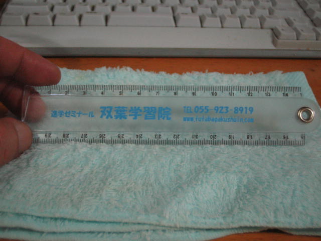 写真は昨日届いた『名入れの定規』折利たたみ式で30センチになる奴。300本届いたので早速配布を始めた。『おっ!これいいジャン!!塾長!太っ腹~~~!!』 なんて声があちこちで上がった。『200名になったら、もっといい奴を全員にプレゼントするよん。』 で、営業してやった♪♪