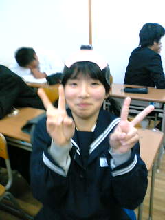 いつも私を慕ってくる『中3優香ちゅわん』今日は数学のテキストを忘れたなどと抜かしたので、『このカツラかぶっていろ!タコ!』と絶叫~~~しかし、ぜんぜん嫌がらずに、写真にピースまで・・・ うい奴じゃのう!