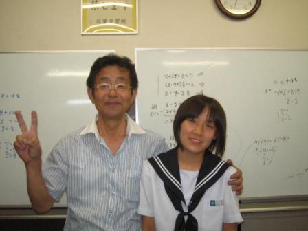 小2からのアキちゃんとのツーショットなのだが、昔みたいに『塾先生!』とは言ってくれない目下、『大学生になったら塾の講師だよ♪♪』で洗脳中なのだ こちらはお気に入りのユカお嬢。中学時代には、泣かせた挙句に『100万ドルの微笑み返し』を食らった私女は分からない 『大学に入ったら講師ね。』に『はい。』で洗脳完了