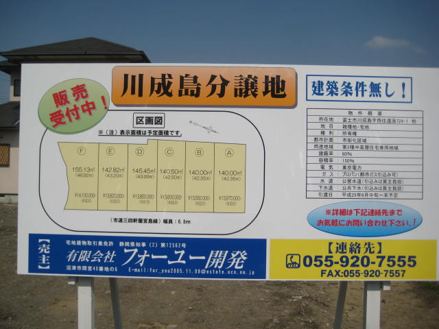 昨日5月26日にフォーユー開発の『細野社長』が来塾され、ネットで告知する事はぜひお願いしたいという事でしたので、ここに掲載します。◆この土地のA・B・Cが私の持ち分、 Dは従兄と私の共有になっています。E・Fは従兄の持ち分です。私もネットで色んな買い物をしているので、ひょっとしてどなたかに見てもらえるかも・・・と書いています。この土地は静岡県富士市川成島です。国1バイパスまで200mくらい、 新幹線新富士駅まで1km位だと思います。閑静な住宅地です。 祖父が健在だった頃は『新作り』と言ってお米を作っていた場所です。 祖父が亡くなり、私の父と叔父が相続した場所です。 父はここに家を建てようと思った時があるので、良い土を入れたと言っていました。分譲にあたり調査したところ問題なしという事でした。 父も叔父も亡くなり、私と従兄弟が相続しましたが、私にも従兄弟にも家があるので、住む事はできません。住まずに持つと固定資産税が、なかなかに高く大変なので、どなたかに買ってもらえればと思っています。父も叔父も大切にしていた土地ですので、商業用にではなく、居住用の土地をお探しの方にお買い求め戴ければ・・・と願っております。お問い合わせは、下記の『フォーユー開発・細野社長』までお願い致します。murachanhappy:『とりあえず禁酒50日目』塾長:村松の日誌です副塾長:杉山の日誌ですhttps://www.youtube.com/watch?v=uofG9z66LXg コンドルは飛んでいく
