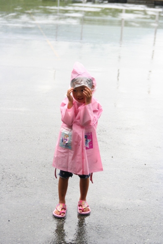もっといっぱい遊びたいんだけど、帰る時間となりました。空模様もだんだん怪しくなってきました。 FUU 「お母ちゃん、FUUはカッパ大好きなんだぁ~」 母ちゃん「RIN何してるの?」 RIN「雨が落ちてきた!」雨が降っても楽しいFUURIN。来年の合宿はいっぱい活動できるといいね。