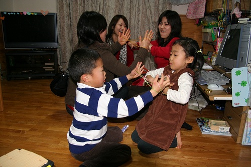 FUURINの父ちゃんの教え子だったお姉ちゃんたち3人が遊びに来てくれました。父ちゃんは昼からインフルエンザダウン。FUURINに移らないようにと、実家に一人で寝ていて留守です。今日は父ちゃんの41才の誕生日だというのに・・・。(父ちゃんおめでとう)元気で、楽しいお姉ちゃんたちにFUURINはいっぱい遊んでもらいました。 あやとり競争をしたり いすとりゲームは大盛況! イスとりゲームでチャンピオンになったFUUはみんなの前で踊りを披露。お姉ちゃんたちまた来てね~ところでこのイスかなりいい!脚立が欲しくてネットで探して今日届いたばかりです。大きさ2種類。色は4色。各部屋に脚立!と思って4台も購入したのですが、座るところにも、足にも滑り止めがついてるのでけっこう安定してました。お値段もお手頃だったしね。 簡単にたためて、ぶら下げることもできる!いろんなことに使えて重宝しそうです。
