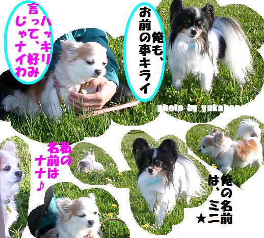 日曜日に観た大日本人、やられたぁーっって事は、金返せって事と言うより、時間を返してって感じぃその間、風助をムックママに預けてまで観たのに、内容あれかい面白くない映画でも、普段はそれなりに最後まで観るんですが、松っちゃん扮する大佐藤?だかのインタビューが長くて、眠らないようにするのが大変だったぁーっまぁ、映画を観ての感想って人それぞれだけど、私的にはTVっぽいってイメージ。洋画と同じ金額かよっとも思うけど、インパクト強すぎて、見終わっても数日頭にこびり付いてるぅ~お留守番の風助はと言いますと、大日本人並の凶暴さで、パグのムックに襲いかかり、大騒ぎだったとか。。。ムックママは、風助が怖すぎて、一切触ることが出来なかったそうです帰宅後、ムック&風助でお散歩に行ったけど、風助は吠えまくりだし、ムックは怯えちゃって、本当にスミマセンでしたブログランキングに押して欲しいナリ♪チワワブログランキング 人気blogランキングへ @With 人気Webランキング 楽天ブログランキング ブログ広場