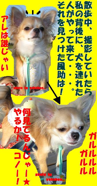 ポチしないと威嚇しに行くかもぉチワワブログランキング風助にかなり恥ずかしい服着せて、お散歩へGOせっかく着せたのだからと、色んな角度から撮影したいでしょ、だから椅子の上に乗せて、じっくり撮影してた訳ぇ~レンズの向こうに1点を見つめ動きが止まる風助の姿・・・。するといきなり鬼の形相だぁーっどうしたのかと振り合えれば、犬散歩中のご婦人が、立ち止まって、こちらを見ていたノダッでも、いきなりのファイトなチワワに、「エッ」って感じで、ビックリ仰天をすぼめて威嚇する風助驚いたご婦人は、「ごめんねぇ。。。」の言葉を残し去っていった。。。サバラ。毎度こんな感じなもんだからぁ、風助にはお友達が居ないのよーんでもでも、威嚇の顔は笑えるでしょう偶然撮影出来たから、嬉しいワン本日のちょっぴり恥ずい衣装はコレシリーズで色々とブログランキングクリクリクリックチワワブログランキング 人気blogランキングへ @With 人気Webランキング 楽天ブログランキング