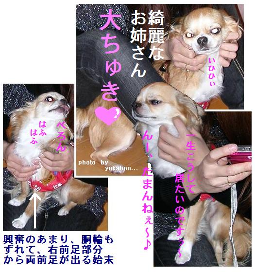 人間もぉ犬もぉ、綺麗なお姉さんが好きチワワブログランキング犠牲者その1里帰り中、風助を抱っこして座っていたら、親戚のおじさんが「この犬まだ囓るの」って聞いて来た。だから、「超囓りますぅ~、だから離れて下さーい」って言ったのに、近づいて来て、風助の口元に握り拳を近づけて、「噛むのか噛むのかホレホレ」と、何度もしちゃったもちろん、手は囓られて傷だらけで血がにじんだのだった・・・犠牲者その2親戚の若い子が、風助と仲良くなりたいと、私の隣に座った。私の膝の上には、警戒する風助もちろん直ぐに吠える、そして飛びかかる、さらに齧り付く座る前から予想していた動作なので、親戚の子はダウンベンチコートで全身を包み、手には軍手。つねに、腕を上げて肘を曲げ、顔面を守りながら風助の攻撃を交わすのでした。。。。どんだけぇ~犠牲者その3お友達の家に行って、風助とくつろいでいたら、カッコイイ息子さんがご帰宅以前からたまに会って居たので、今までは被害ナシだったけど、「風助ぇ~」と撫でようとした手をガブッとっさに手を引っ込めたからギリセーフそれでも、手の皮をかすめた感じで痛いよね息子さんもビックリでした。なのにぃ、今度は綺麗で若い娘さんがバイトから帰宅して、「風ちゃ~ん」と言った瞬間から、風助デレデレ何ぃ~、その態度の違いわぁーっその豹変ぶりわぁーっ全員ビックリ仰天しましたとさっ4日20:00~ジャスト千円