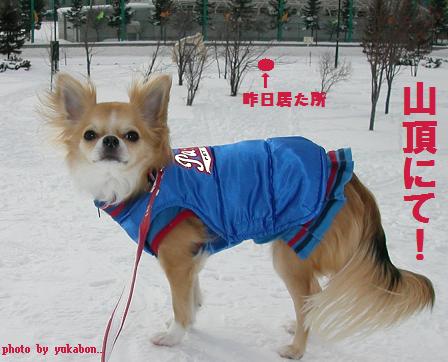 皆々様ポチッの応酬により、お陰様で最近になく上位になってたワン誠に有り難うございま~すチワワブログランキング昨日のブログで、山頂スキー親子に驚いてぇ逃げるへっぴり風助の模様をお伝え致しましたが、本日は山頂に誰も居なかったので、登って見ることに山頂からの風景です山頂からなのに、今ひとつ映像では伝わらないのはやっぱ山が低いからだぁねぇ~確かに、登るのも下るのも速攻でしたワンハッキリ言って、平らに見えるよねトホホ今日はね、風助ご機嫌が宜しいようで、ハッスル抱っこの要求も少なく、かなりの距離を疾走したり歩いたんじゃないかなぁ~いつもピンクな格好だけど、今日は青で男らしく決めましたやっぱ青とかの方が似合うかね