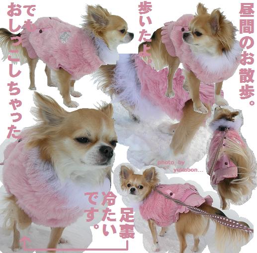 毎日が氷点下にポチッ。チワワブログランキング最近、毎日が氷点下寒いから散歩パスって言いたいとこだけど、それなら冬が終わるまでお散歩が出来無くなっちゃうぅぅぅので、今日は日差しもあったし、外の状態を確認してから、これならお散歩行けそうねと、急いで服を着てGO風助も今日はお散歩行きたぁーいと甘えてきたのでラッキー途中、何度か抱っこするものの、スタスタ歩く風助かなりぃイイ感じぃ~と思っていたら、歩道の真ん中で四つんばいのポーズ。ウ○チかと思ったら、マジおしっこしてましたぁぁぁ風助マーキングしないんだけど、たまぁにマジおしっこしちゃいます歩道の真ん中に、黄色いオシッコの穴が出来ちゃったあぁ、おしっこしてからお散歩に出れば良かったワン下に着たワンピが少し濡れてしまったので、早々にお散歩切り上げぇ~濡れた部分を気にしつつ時々匂いも嗅ぎつつ、風助は家へと歩き続けるのでありました家に着いた時には、足の裏が冷たぁーくなちゃってぇ、3本足のポーズ(映像左下)で切り抜けていたヨ