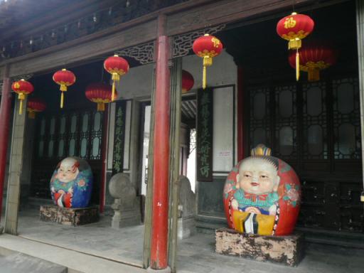 無錫の名産品といえば 太湖石・・・庭園でよく見かける、穴がいっぱい開いた不気味な(?)石 真珠 ・・・太湖でとれる淡水パール と、これくらいしか知りませんえしたが、もうひとつ有名なものがあるそうですそれは「泥人形」つまり土をこねて焼いたお人形ですね 泥人形について詳しく知りたければ、やはり博物館に行くのがイチバンでしょう錫恵公園から歩いて行ける場所にある「泥人形博物館」を訪れましたいきなり、ユニークなお人形が私たちを出迎えてくれましたよ博物館兼工房になっていますが、訪れる人は少ないのか、私たちがやってきてから博物館の入り口の鍵をあけ、電気をつけてくれました これが泥人形の一番代表的なモチーフ「阿福」ですこれは特に古いものなので、顔がとても怖いもともとの泥人形の由来は、常に搾取され続けた農民達が妻子を養い生き抜いていくために、泥を固め、暖炉や日干しで固め、彩色を施し、それをなにがしかの食べ物と交換して生き抜くために作られたもので、中国各地いたるところにあるそうです今では高級作家などという人まで現れて、芸術の分野に入っています 子供がたくさんかさなりあって、塔をつくってます面白いですねー この獅子の格好もひょうきんです実は、笑える人形がたくさんあって、みんなでケラケラ笑いながら見学するという状況でした でも、こんな美女の人形もありましたよ こちらはかわいい「中国四大美女」です楊貴妃、西施、王昭君、貂蝉がその4人です 着ぐるみ泥人形現代のものだけど、このモチ-フが博物館に展示してるってのがおかしいよねでもかわいい 大うけだったこの動物なんだと思う 答え・・・・「鹿」どっから見ても「ヤギ」なんですけどーーー 工房では製作途中のお人形がたくさんありました こうやって型で抜き、色を塗っていくのです 博物館で人形を買おうとすると、ちょっとお値段は高くなりますが、外のお土産物屋にはこのような丁寧な仕事の人形はありませんいい物を買いたいなら、やはりこちらで買うのがいいと思います さて、明日は無錫で食べたランチをご紹介お楽しみに~