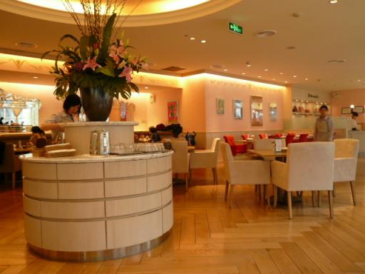 上海の観光名所 その1 外灘・・・3週間前に訪れた久しぶりの外灘は、あいかわらず近未来的建物とオールド上海が入り混じった景色が面白いです その2 新天地・・・周りに中国語が聞こえなければ、中国だということを忘れるくらいにおしゃれな場所です 昨日はこの「新天地」に行ってきました 新天地は初めてだという友人は、「うわ~、おしゃれやね~」と感動しています私も久しぶりだったので、ついついはしゃいでしまいます 雨の中、端から順番にお店をのぞき、かわいい雑貨や洋服を見つけては喜び値札を見ては値段の高さにガックリする連続でしたが、15分もすると一桁の違いにも慣れてくるもので・・・・ 最初のうちは「うひゃ~~、このポーチ300元?!ありえへーん」と言ってたお友達がチャイナ風ドレスを見ながら「7000元かー、でも7割引だから2100元。ふーん、これかわいいねぇやっぱり布市場とは違うねぇ」って言ってました(慣れって怖いです)布市場では300元もあればチーパオが作れちゃいますから、ホントに一桁違うんですよ 新天地全体を見終わった後、お腹が空いたのでランチにいたしましょう さて、どこに入ろうかしら新天地には中華・洋食・日本食のレストランがたくさんありますどのお店もおしゃれでおいしそう そんな中、一軒のお店を見つけましたおぉー、懐かしの「AFTERNOON TEA」ではありませんか半年ほど前に、OPENしたと言うニュースをフリーペーパーで見たことがあるのを思い出しました 淡いピンクと白で、やさしくてかわいい雰囲気の店内は、日本の「AFTERNOON TEA」のイメージと同じです ランチセットは60元で、メインディッシュとお茶が選べ、パンがついています 私はフルーツティーを、友人はいちごミルクを頼みましたこの、フルーツティー、フレッシュフルーツの絞り汁とアールグレーで作ってあるのですがすごーくさわやかで、いい香りがして、とてもおいしかったです メインは「小エビのリゾット」ですお米がべちょべちょでなく、ちょうどいい噛みごたえでした 「AFTERNOON TEA」と言えばケーキでしょ!と思ったけれど、リゾットを食べたらお腹いっぱいでこれ以上ははいりませんケーキが38元くらいでありましたが、それはまた別に機会に・・・ランチセット以外に、ケーキセット50元というのもありましたよ 窓の外を眺めると、雨にけむる石畳の街並みがロマンチック隣のお店の外のテラスに並べられたテーブルが、寂しげに雨に打たれていますここは代官山?と思わせるような景色に、ちょっと日本が恋しくなりました