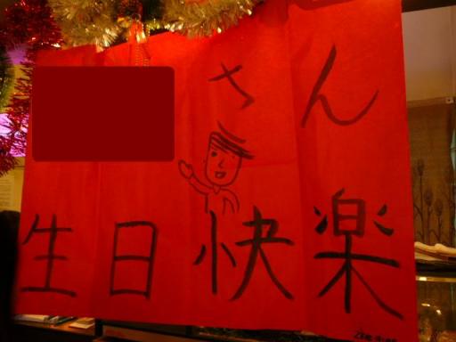 16日は私の誕生日でした今年はひっそり過ごそうと思っていたのですが、皆さんにアピールしまくりの誕生日になってしまったのです昨日も書いたとおり合同練習でも誕生日というだけで、みんなの前で太極拳をやらされましたしね そして練習の後、みんなで「新年会」をすることになっていたのですがいつのまにやらそこもバースデーパーティー会場になっていたのです裏であやつってるのは誰だ(検討はついてますが・・・) 横断幕まで!どんだけーーーこの横断幕は、私の見ず知らずの日本人が書いたと聞いて二度びっくりです実は、お店のママが私のヨガ仲間でもありまして、彼女の日本語の先生が書いてくれたそうですその方も「何でオレが??」と思ったに違いありません それに真ん中の絵は・・・・花輪くん ケーキの用意までしてくれていましたうわーぃ、ありがとーケーキの上にはお決まりの「プチトマト」が飾ってましたあら、お初にお目にかかる「キンカン」も飾ってますねぇ~ 食べ飲み放題のコースということで、皆さんグイグイ飲んでますあちこちのテーブルから「ビール持ってきてー」と声が飛んでるよとても昼間とは思えない雰囲気でしょ? 「何歳になったのー?」とわざとらし聞く友人たちフンッフンッ皆たいして変わんないじゃん! 「チェキラ!で撮ろうよ」と誰かが言い出し、みんなノリノリでチェキラッでも真ん中の二人、指が「チェキラ」ではなく「まことちゃん」になってますからー と、昼間っからハイテンションで飛ばしていました こんなに大勢の方に祝っていただくお誕生日は初めてです (ホントは新年会だし)しかも初対面の人まで巻き込んでしまい、ごめんなさい (まったくだ)来年の誕生日も蘇州まで来ますから、ヨロシクね (だから新年会だっつーの!) こうしておなかいっぱい食べて飲んで、楽しいひと時を過ごすことができたお誕生日あらためて皆さんのおかげで楽しい蘇州ライフを満喫できているというのを実感しましたみなさん、ありがとうございましたそしてこれからもよろしくお願いします