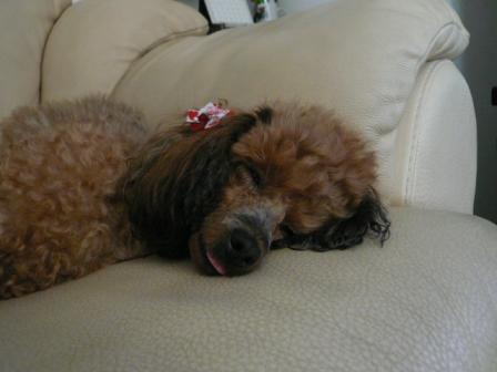お寝坊ができるGWの朝でも、マリンちゃんは寝坊させてくれません外が明るくなり始めると、ペロリと私の顔をなめて「朝だよ~」と教えてくれるのです眠いので無視していると、30分ほどはおとなしく私の横で寝転んでいますがだんだん我慢が出来なくなってくると、またペロリそのうちに手でペチペチと顔を叩き始めますそれでも無視していると、くぅ~ん くぅ~んうぅ~ん、しょうがないなぁ・・ノロノロとおきだし、ササッと着替えたら朝のお散歩にでかけますお散歩といっても、ゴミ出しのついでに近所をグルッと数分まわってくるだけそれだけでマリンちゃんは満足なのだお散歩から戻って、普通は朝ごはんの支度をするのだけれど、休日はもうひと寝入りもちろんマリンちゃんも、もうひと寝入り