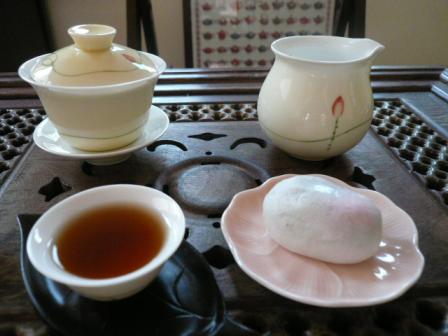 土曜日は台湾茶教室の第2回目 今日はどんなお茶を飲めるのかしら 先生が持ってきてくれたのは「東方美人」2種類の東方美人を用意してくれていましたひとつは秋に採れたもので、とても香りがいいんです もう1つは春の新茶で、白毫がたくさん入っていて、とてもいいお茶だそうですまずは今年の春茶を淹れましたう~ん、すごーく甘い 台湾人の先生は、台湾のお茶しか買わないそうです台湾のお茶は品質管理がとてもきびしいので信用できるけれど中国のお茶は信用できないとのこと 先日の西荻窪の茶館のオーナーも台湾の方でしたが、同じことをおっしゃってました 私は中国のお茶市場で買った中国茶を飲んでいたけれど、先生方は「それは危ないです」だって・・・私の体は農薬に侵されているかもぉ・・・ そして今日もう1つのお茶は、同じく東方美人の冷茶の淹れ方です 香りのいい「東方美人」の秋茶を使って、冷茶を淹れます甘くてすっきりした、夏向けのお茶ですねぇ お茶受けにサンザシのお菓子と、先生のお友達が作ってくださったマンゴーのスコーンますますお茶がすすみます お勉強も忘れて、時間がすぎてもみんなでおしゃべりいけないけない、そろそろ片付けなくては 今日もおいしいお茶とお菓子をありがとうございました