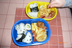 昨日から、こうチャン1日保育になりました2時半頃、帰ってきますはじめての給食ちょっと残したみたいだけど、「野菜も食べたよ」と嬉しそうに話してくれたよ今日は、初お弁当でしたお弁当は、週に2回一応、いつもよりも早く起きたんだけど、ちびっ子3人も、いっきに起きてしまって、バタバタまいチャンは、愚図ってたし・・・見せる程の物でもないんだけど・・・まいチャンのも作ってみたよ~おにぎり小さいウインナー☆玉子焼き☆きゅうり入りちくわ☆から揚げ☆アンパンマンポテト全部食べてくれるかなぁ~お弁当グッズ キティちゃん、とってもかわいいうさぎのおにぎりは、コレ使ったよお弁当の本は、見てるだけで楽しいよ~コレ、すっごく便利だよね第2弾もほしいなぁ~+まりもん+