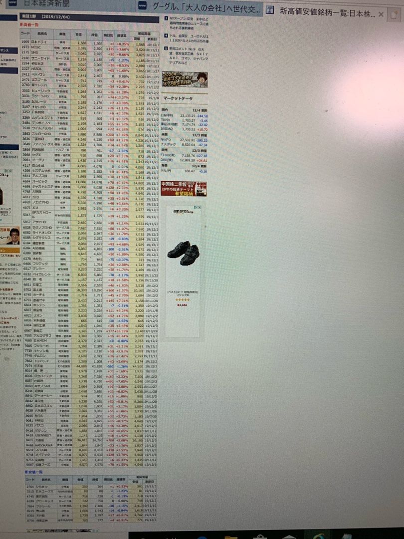 新高値安値、いやーーー、ダントツで高値更新の方が多いわ。今は、高値から直近1~2か月の高値から転がり落ちたものを拾って高値奪還までを保有するトレード。大体、10%は取れるね。間違っても、空売りはしないこと。ヤフーとか下がりそうだけど、売ったらいかん。
