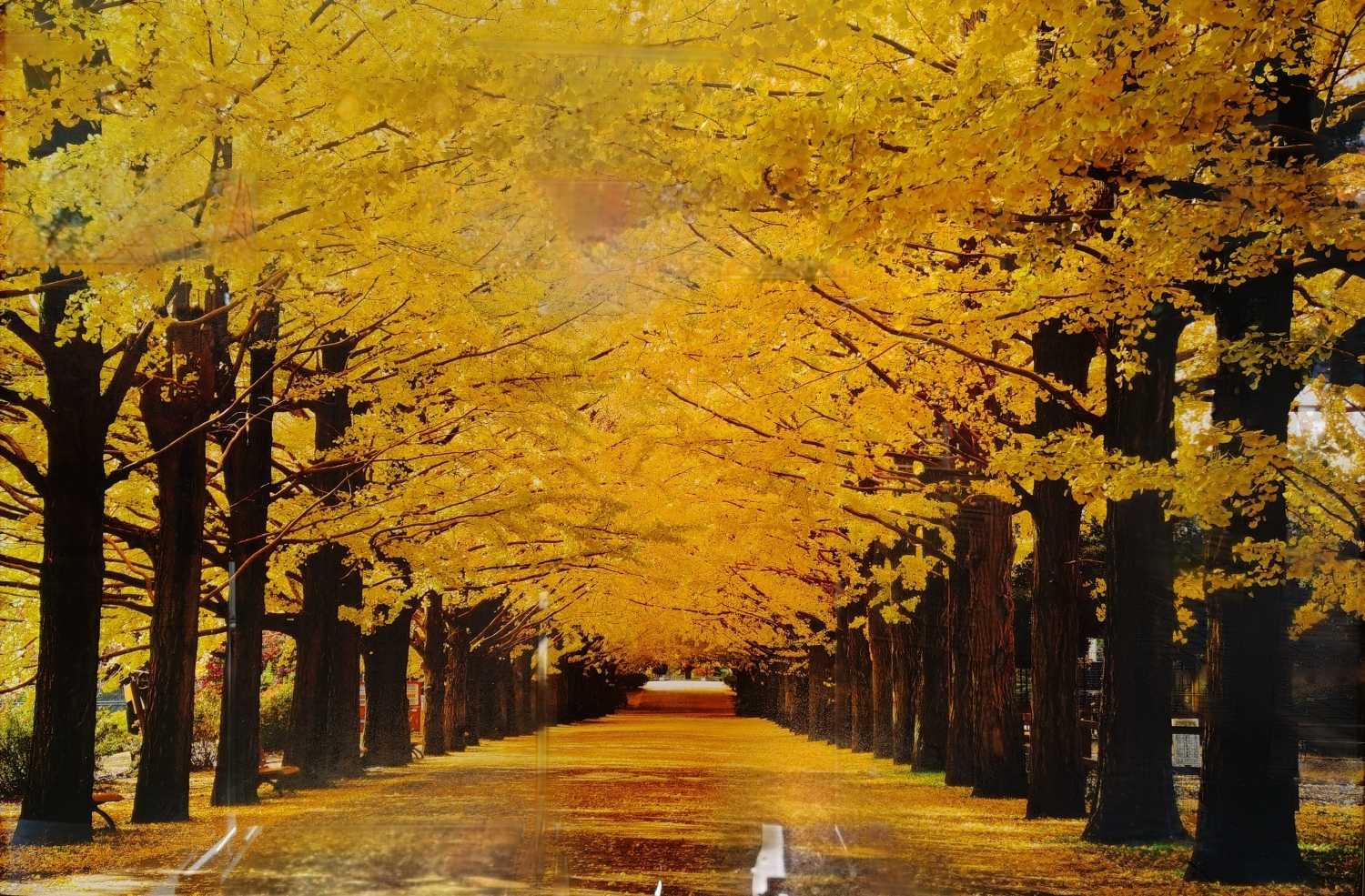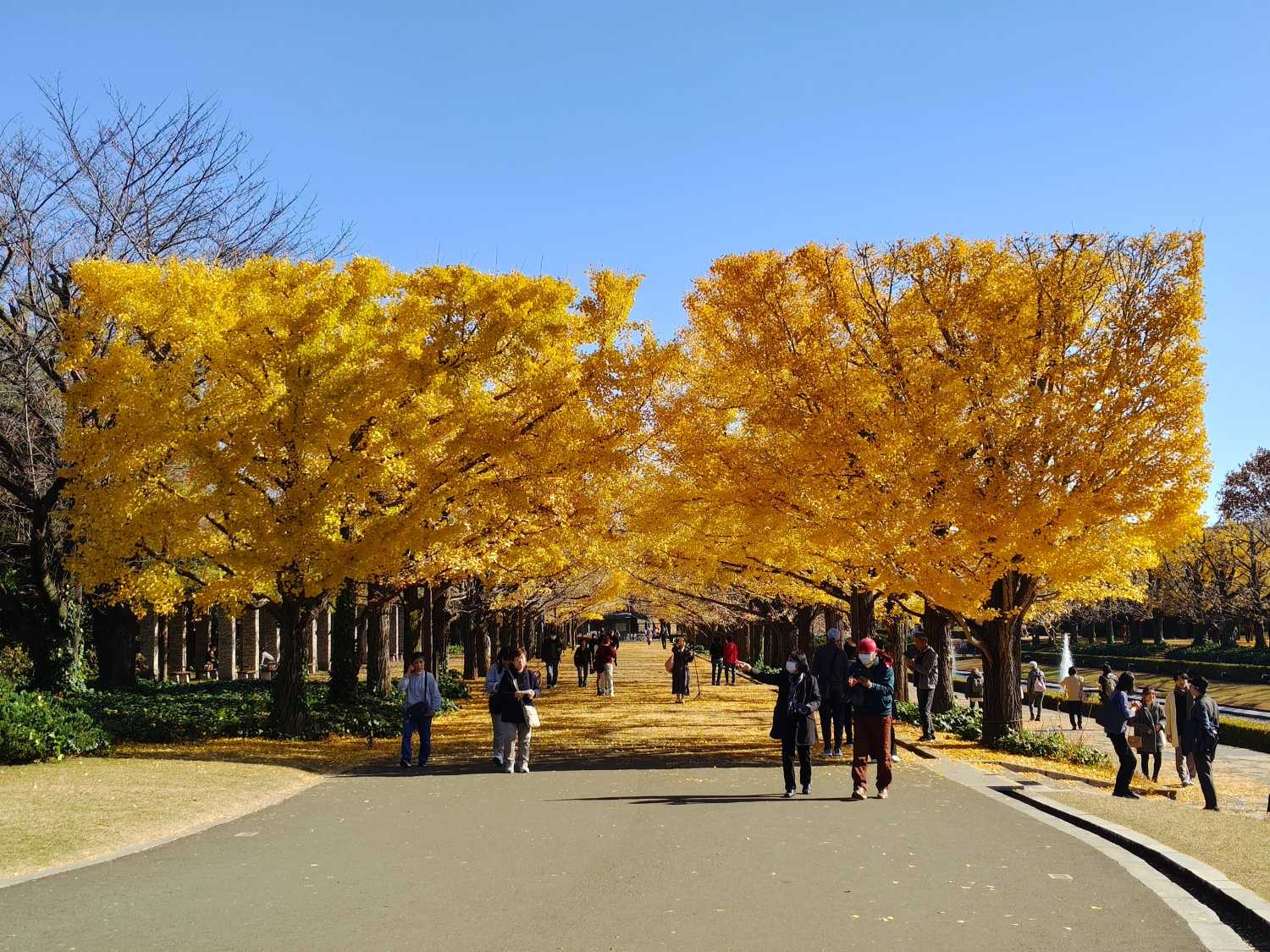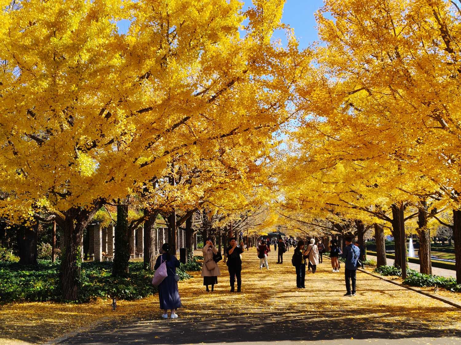 昭和記念公園のイチョウ並木の画像は、あまり上部を入れたがぞうがありませんよね。