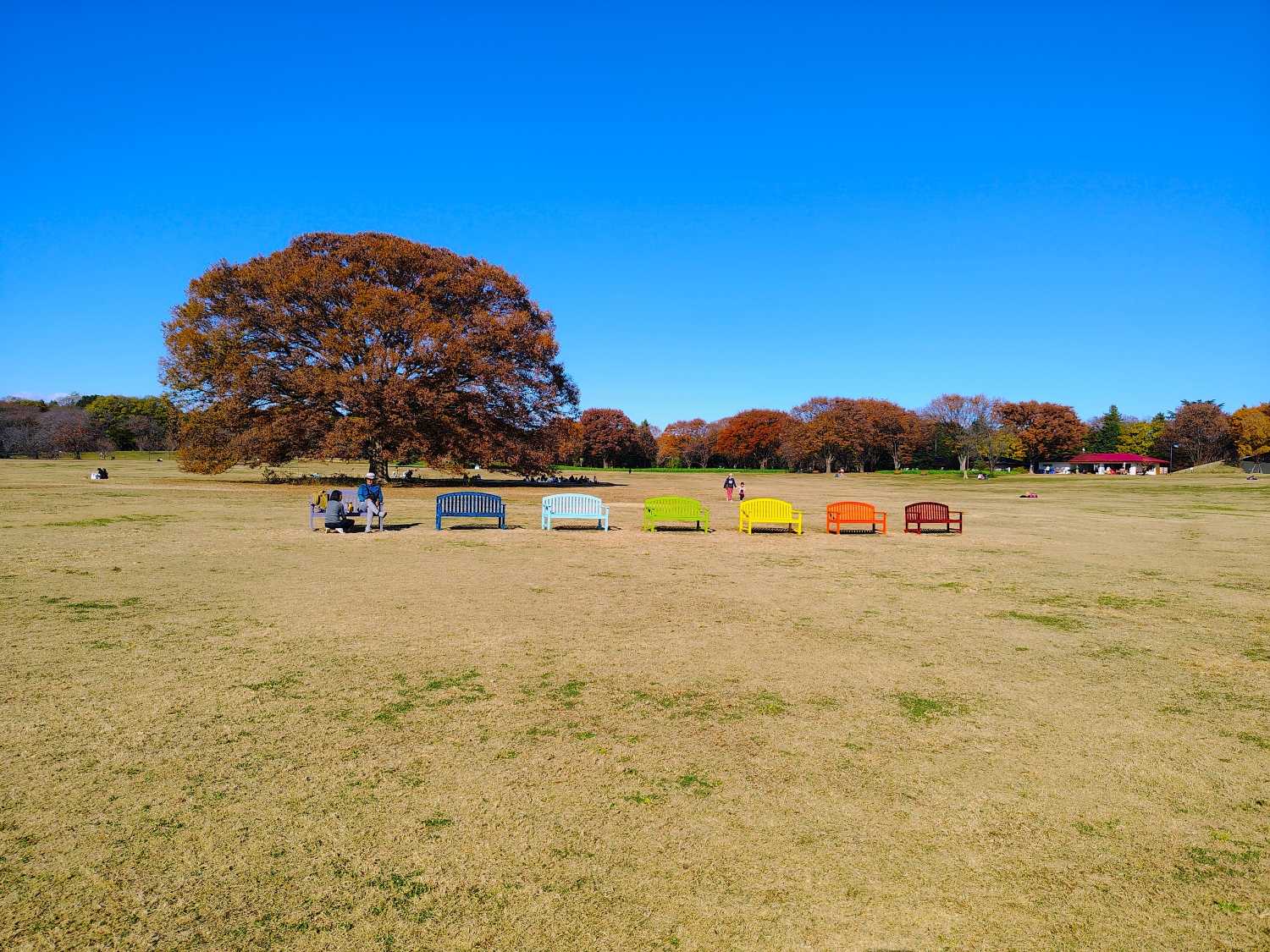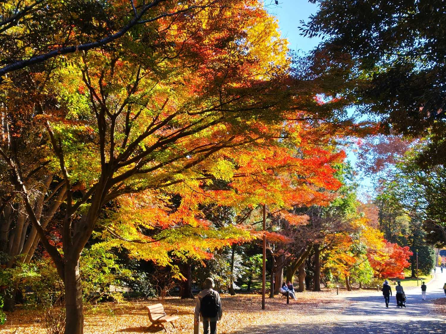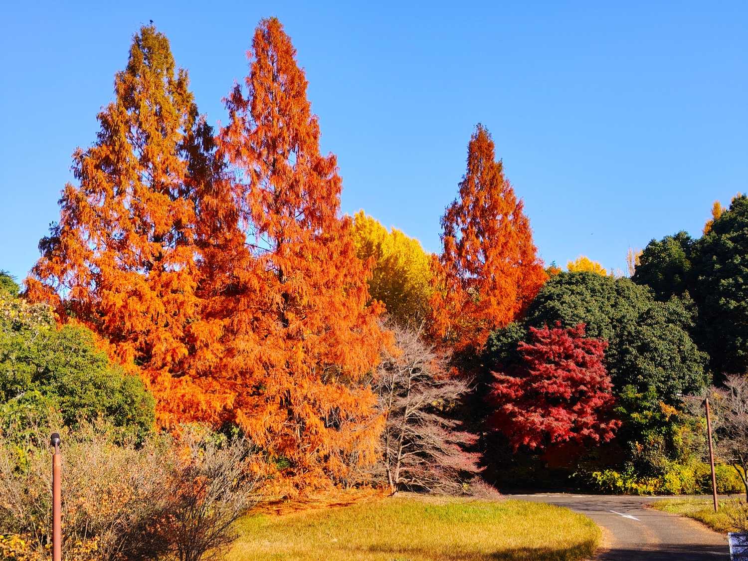 昭和記念公園のイチョウ並木の画像は、あまり上部を入れたがぞうがありませんよね。