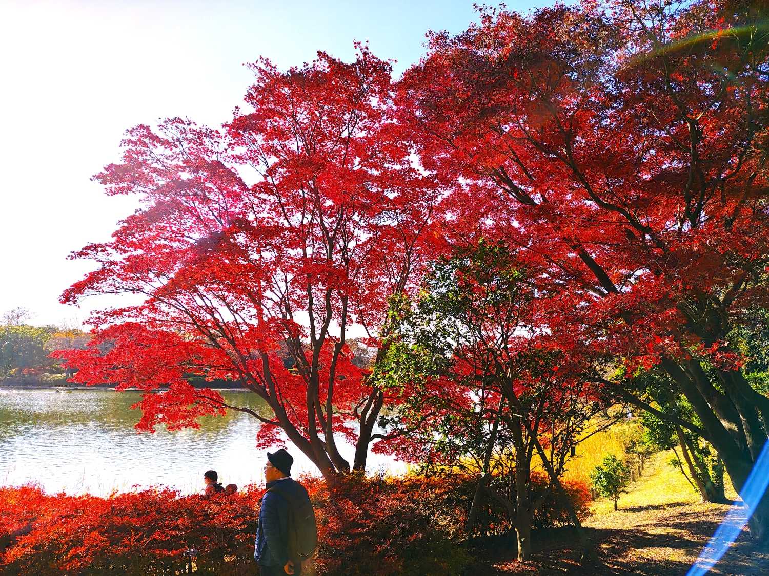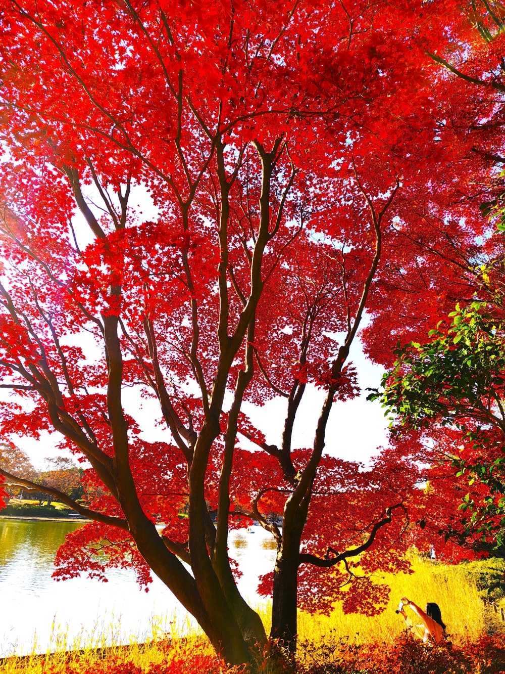 モミジの方は何とか、葉が太陽の光に透けて、真っ赤に