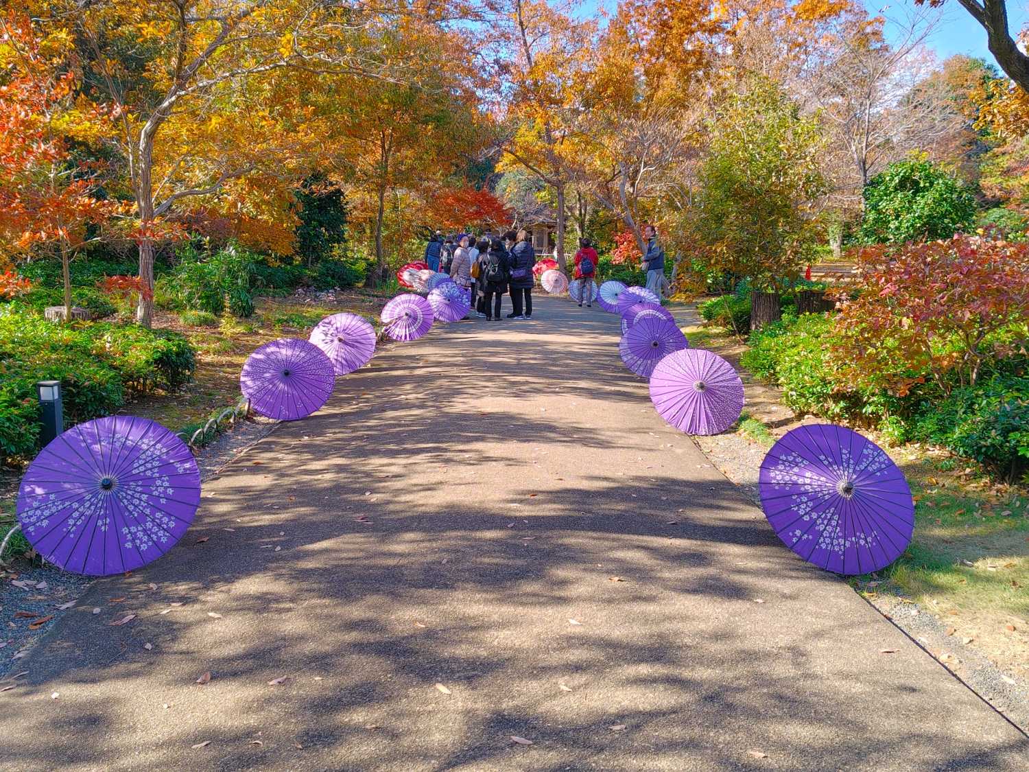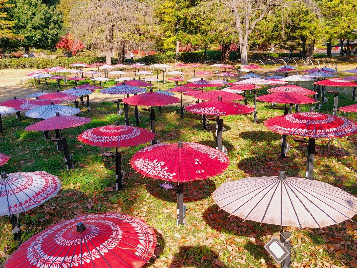 こちらもです。 赤色と青色系の和傘のゾーンに分かれています。
